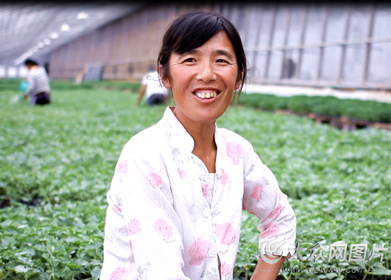 去年以來,菏澤市、區、鎮三級大力推進精準扶貧,大規模的中遠蔬菜合作社應運而生。劉玉紅把家里的5畝土地流轉給中遠蔬菜合作社,每畝地可以拿到150元的租金,另外,合作社再給1000斤小麥。家里的勞動力一下解放出來,丈夫可以去打工了,她也來到合作社干起了插苗工。因為工作能吃苦,她被選為大棚的棚長,每月的基本工資是2000元,還有幾百元不定的績效考核收入。相比過去家里每年七八千的“固定收入”,現在僅靠劉玉紅“農轉工”一人,全家的收入是過去的4倍多,丈夫也可以安心地在外打工,再往家里寄錢。