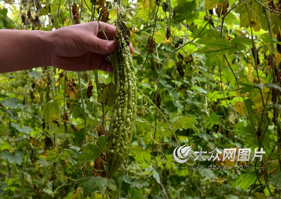 貧困戶王瑞見去年開始種大棚,上半年種黃瓜,下半年種苦瓜,年純收入達到了3萬元,順利實現脫貧。(記者 王宗陽 攝)