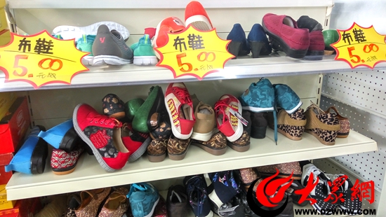 各種樣式的新鞋都是5元一雙。(記者 王宗陽 攝)
