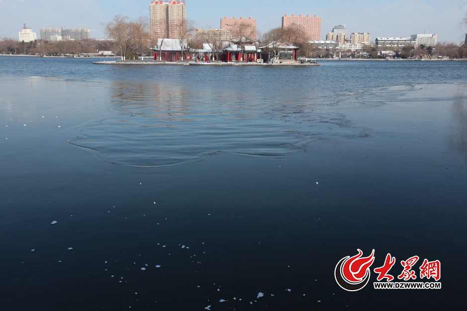 1月23日,濟南大明湖新景區鵲華橋附近水域出現大面積結冰。當日,濟南最低氣溫達零下20℃,這是濟南自1971年以來出現的最寒冷天氣。大眾網記者 王長坤 攝