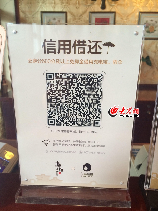 枕水酒店工作人員告訴大眾網記者,烏鎮景區有100個信用借還點,有1000把雨傘、500個充電寶出借。每個信用租還點都有一個二維碼,只要打開支付寶掃描二維碼,2步即完成租借。據了解,租雨傘和充電寶,只是烏鎮“信用租還”的第一步。以后,嬰兒車、拐杖、輪椅等都將可以信用借還。同時部分酒店,也將實現免押金信用入住,免去了交押金、查房等繁瑣手續。