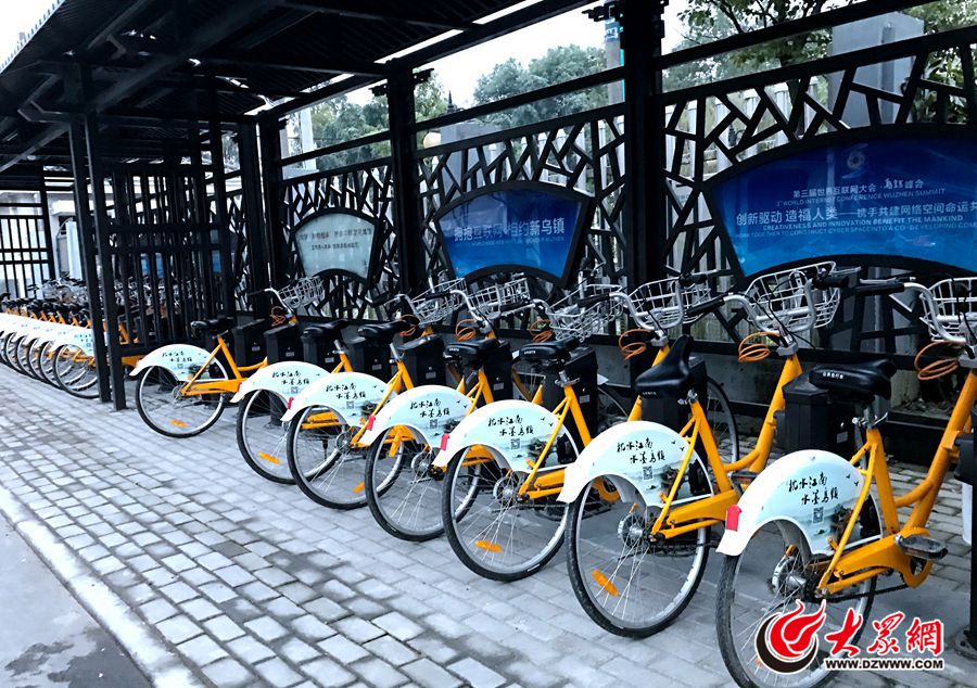走在烏鎮街道上,便民自行車租賃點隨處可見,只需要微信掃一掃注冊賬號,就能方便地租一輛自行車暢游烏鎮。大眾網記者 樊思思 攝