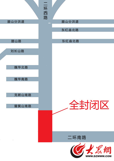 具體繞行路線為:經(jīng)二環(huán)南路至二環(huán)西路的車輛建議繞行103省道至濟(jì)南南繞城高速,或至104國道黨楊路繞行;北向南車輛從二環(huán)北路至二環(huán)西路的車輛建議繞行濟(jì)南西繞城高速到104國道,或者沿經(jīng)十路、黨楊路至104國道通行;西向南車輛,可以從濟(jì)南西收費(fèi)站至104國道或二環(huán)南路,或者從經(jīng)十西路、黨楊路至104國道或二環(huán)南路;南向北車輛,可以繞行固山收費(fèi)站至經(jīng)十西路、二環(huán)西路,或者從104國道、黨楊路至劉長山路延長線、二環(huán)西路。