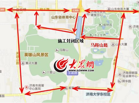 今天上午,大眾網記者從濟南交警市中區大隊獲悉,順河高架南延工程將于明天正式二期施工,將在馬鞍山路口開挖斜井通道,封閉區域為順河高架橋口南80米至牛陣飯店門口,共計約310米,順河高架下橋車輛以及橋下向南行駛車輛只允許向南行駛至馬鞍山路右轉;玉函路東側馬鞍山路向西行駛的車輛只允許右轉沿臨時通行便道向北行駛。施工期間,車輛可繞行至英雄山路、舜耕路、濟大路、六里山南路、經十路,公交公司將發布28路、34路、42路、43路、129路、K54路公交車的調整方案。