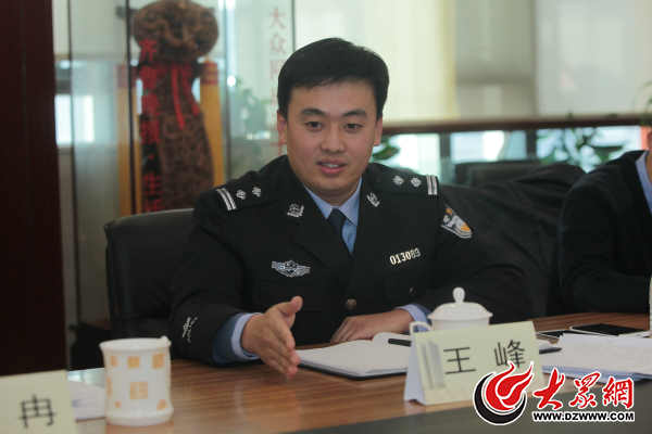 濟南交警支隊交通處副處長王峰在座談會上發言,表示治堵要從小汽車轉到以人為本,提倡綠色出行。