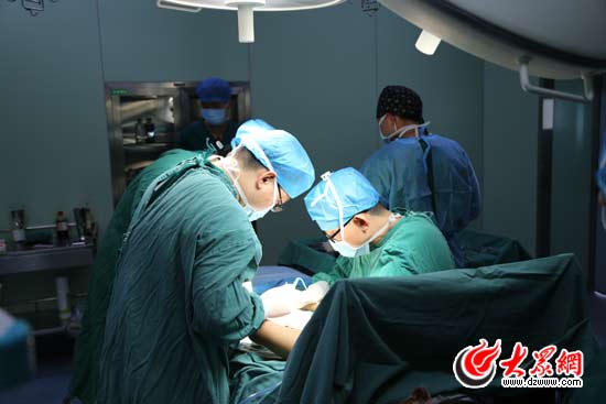 王若義在檢查第一例手術(shù)患者劉敬的恢復(fù)情況。