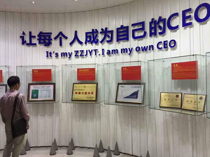 海爾智能生活展中貼出的標語“讓每個人成為自己的CEO”。