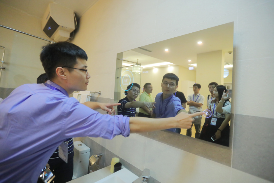 在智能家居展廳,海爾的一些整套公寓引起了采訪團記者們的興趣。尤其是一套占地僅為16平米的公寓樣板間,經過海爾設計師的設計,可以達到60多平米的實際使用效果,給記者留下了深刻印象。重慶華龍網首席記者徐焱的新房子正在裝修中,在看到了海爾出品的一款與熱水器綁定、可以隨時監控自己身體健康數據的智能浴鏡后,他迫不及待想要購買這款產品,“我覺得以后每天早晨在衛生間洗漱時,就能看到自己的身體健康指數是一種很棒的體驗!