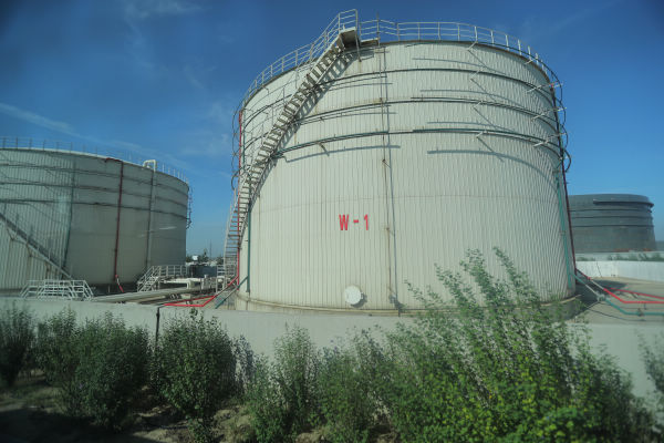 走進中化弘潤石化公司,庫區整齊的排列著很多大型儲油罐,頗為壯觀。