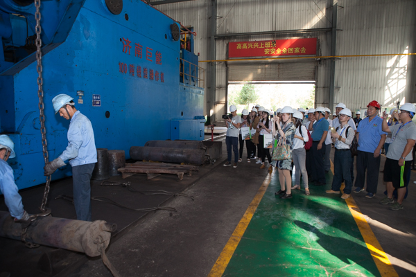 “供給側(cè)·山東策——第十二屆中國(guó)網(wǎng)絡(luò)媒體山東行”西線采訪團(tuán)來到山東伊萊特重工的車間(撒偉 攝)