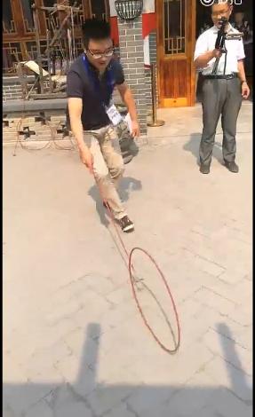 用一根鐵棍加一個鐵圈,你能帶著它們走直線嗎?