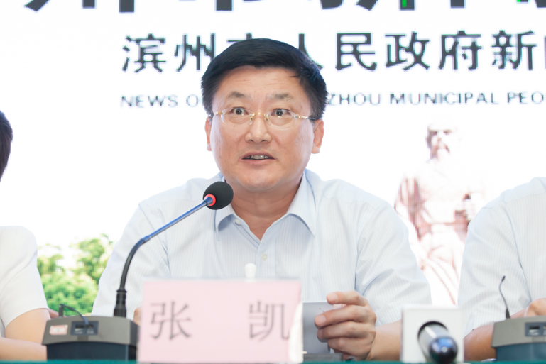 22日下午,在濱州市舉行的新聞發布會上,濱州市委常委、常務副市長張凱介紹該市供給側結構性改革情況(撒偉 攝)