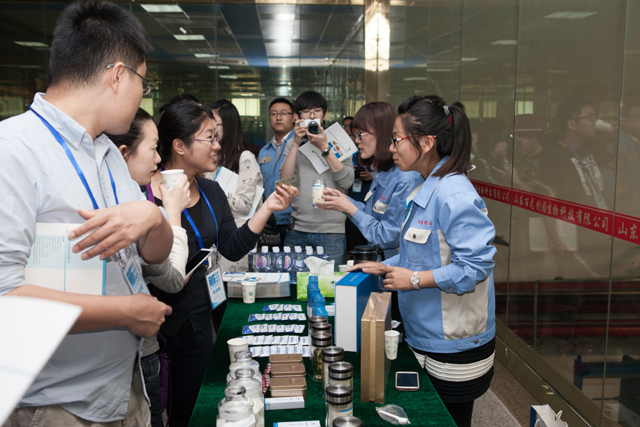 來到山東百龍創園生物科技有限公司,在現場產品展示臺前,采訪團成員們品嘗了百龍公司生產的低聚果糖等功能糖產品。據相關負責人介紹,百龍公司正逐步從以生產功能性食品配料為主,轉變到集中產業優勢,致力于改善中國人營養健康事業上來。目前,公司年生產能力30萬噸,借助生物高科技成果轉化和國內最先進的生產線,已經成長為集研發、生產、銷售、服務為一體的高新技術企業,服務領域更是涵蓋食品、醫藥、保健品、飼料等多個行業。