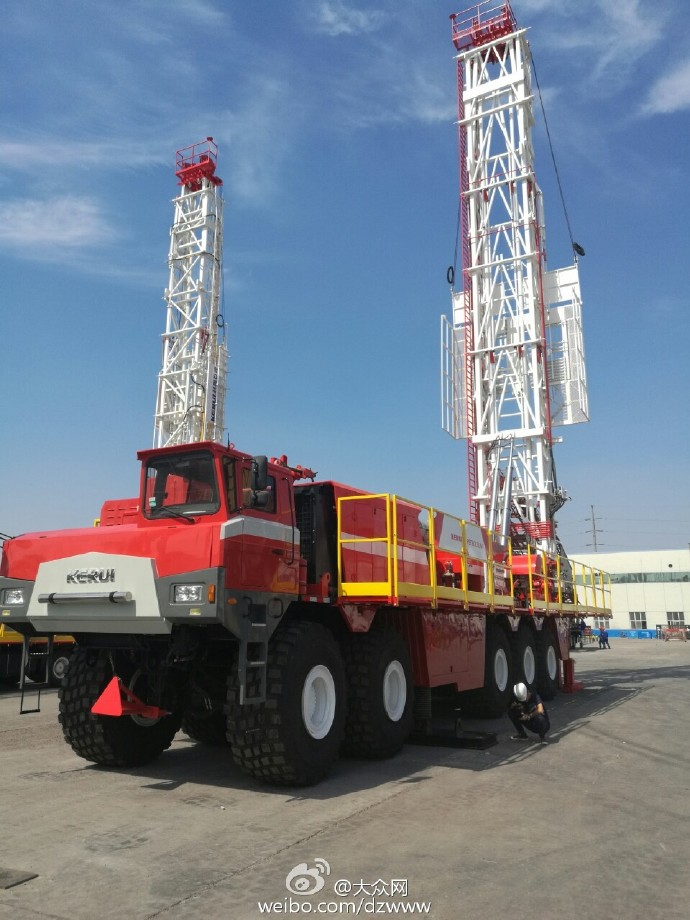 大眾網(wǎng)9月21日快訊 9月21日,第十二屆中國網(wǎng)絡(luò)媒體山東行西線采訪團(tuán)抵達(dá)科瑞集團(tuán),看到了一個(gè)個(gè)“鉆井神器”。據(jù)介紹,它們是科瑞集團(tuán)的“秘密武器”,其中一輛紅色大卡車同“拉導(dǎo)彈”的設(shè)備是一樣的。據(jù)講解員介紹,紅色的設(shè)備是在沙漠中鉆井時(shí)使用的,藍(lán)色的是在極地中使用的。