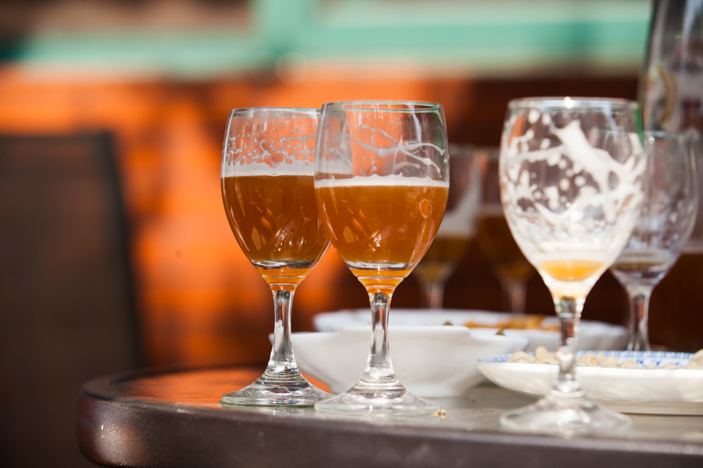 村子里自釀的新鮮啤酒。(撒偉 攝)
