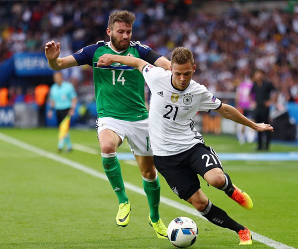 在德國對北愛爾蘭的比賽中,勒夫對首發陣容做出了兩處調整,而這兩位被調入首發陣容的球員都奉獻了杰出的表現。打入唯一進球的戈麥斯自然不用說,而在德國隊的后場,拜仁小將基米希令人眼前一亮,在右后衛位置上的發揮令人印象深刻。