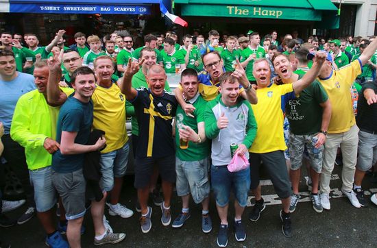 百名球迷街頭給法國女孩唱情歌,在去觀戰的列車上給陌生小孩唱搖籃曲,被對手擊敗還和對方球迷一樣瘋狂慶祝,這屆杯賽可愛的愛爾蘭球迷再次成功吸引了我們的眼球,為全世界球迷帶來了歡笑與感動,有媒體評價他們為歐洲杯“帶來了一陣清風”。