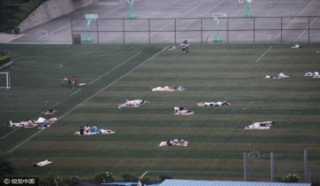 西安持續(xù)高溫 大學(xué)生“夜睡”足球場