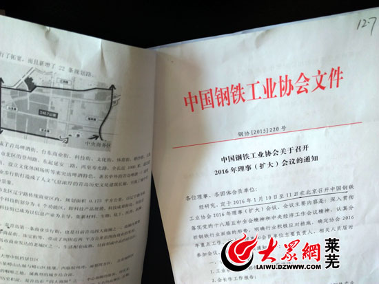 王守東的桌上擺放著中國鋼鐵工業協會下發的文件(記者 亓秀寶 攝)