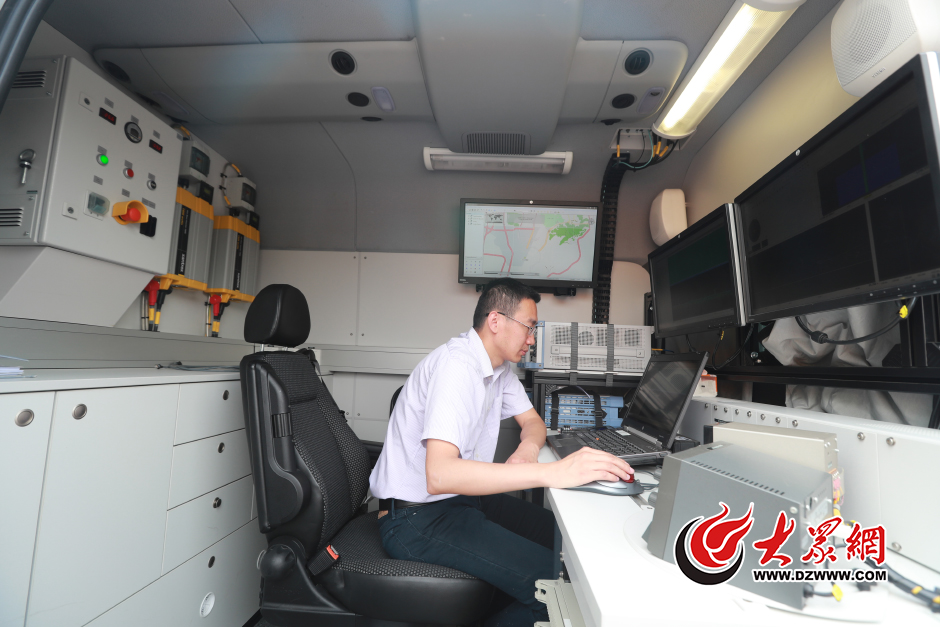 6月6日,在濟南藝術學校考點,工作人員在移動無線電監測車內測試。據工作人員介紹,這臺是國內最先進的設備,是專門用來監測和壓制考場外可疑無線電信號的。大眾網記者 王長坤 孫杰 攝
