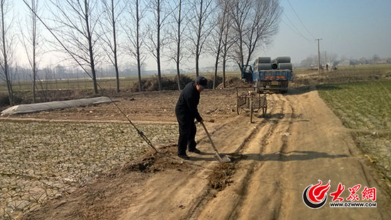 后來,郭洼村修上了村內(nèi)公路,長約1.5公里,大家伙說這下不需要他補(bǔ)路了,該“下崗”了吧。誰知郭長順依然推著三輪,帶著鐵锨修起了公路路肩,補(bǔ)著小巷的土路。現(xiàn)在由于這條道路年久失修,一些大車又經(jīng)常在路上經(jīng)過,路面嚴(yán)重受損,大小坑洼不斷,嚴(yán)重阻礙了村民的通行。郭長順更是一有空就用手推車?yán)瓉硇∈印U棄的磚頭等建筑材料,盡力填平深坑。