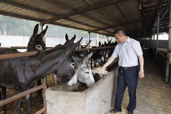 何厚江在養殖場查看牛羊生長狀況。