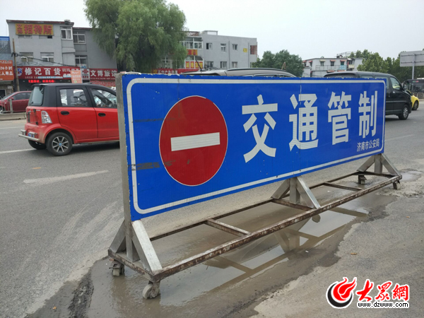 歷山路鐵路立交道下的交通管制牌已經提前安置妥當。目前,該立交道尚未封閉交通,車輛和行人仍可通行。