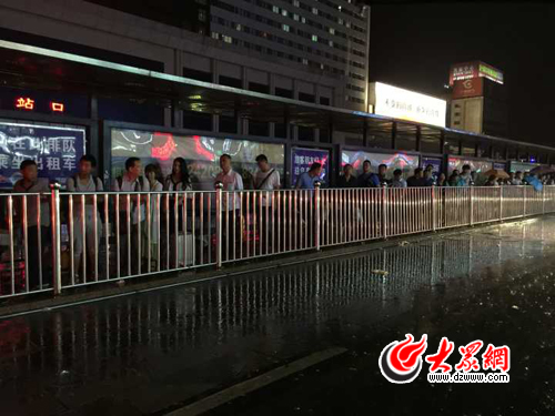 大眾網濟南7月19日訊 晚上11點多,火車站又下起一陣急雨,僅有六七輛出租車在此候客,而排隊等候的乘客則綿延幾十米。據車站的交通協管員介紹,為了疏散旅客,已經向96576出租車調度平臺發出缺車信息,預計半個小時內可疏散完畢。(大眾網—山東24小時記者 趙兵 王長坤)