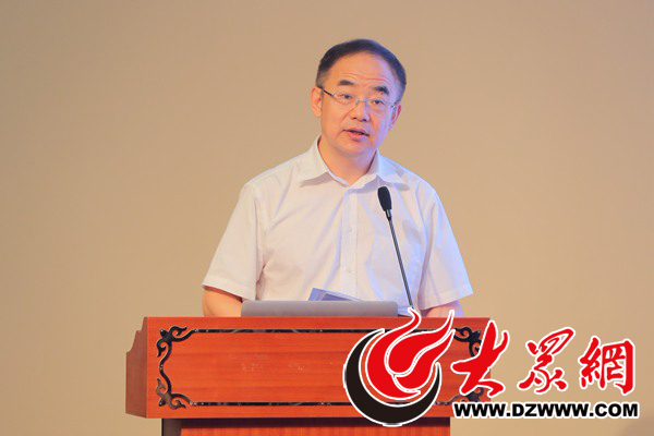 國家新聞出版廣電總局新聞報刊司司長李軍做主旨演講。大眾網記者 王長坤 攝