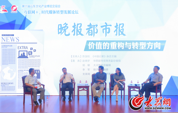 大眾網(wǎng)濟南8月26日訊 近年來,報紙媒體尤其是都市報紙經(jīng)濟收入遭遇了斷崖式下滑。據(jù)2015年新聞出版產(chǎn)業(yè)的分析報告顯示,2015年我國報刊營業(yè)收入較上年下降了10.27%,利潤總額下降53.2%。那在這場前所未有的危機面前,都市報應(yīng)該如何轉(zhuǎn)型?在今天下午的第六屆山東文化產(chǎn)業(yè)博覽交易會——“互聯(lián)網(wǎng)+”時代媒體轉(zhuǎn)型發(fā)展論壇的沙龍論壇上,齊魯晚報、華西都市晚報、揚子晚報、大河報的4位負(fù)責(zé)人結(jié)合各自媒體特點,為其他都市類報紙轉(zhuǎn)型提供了寶貴經(jīng)驗。