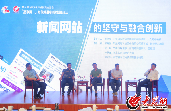 大眾網濟南8月26日訊 “互聯網+”時代,傳統報業需要轉變轉型,新聞網站也同樣面臨艱難的轉型期。在這一過程中,新聞網站應當堅守些什么?又會走出一條什么樣的融合創新之路?8月26日下午,第六屆山東文化產業博覽交易會“‘互聯網+’時代媒體轉型發展”論壇在濟南舉行,在“新聞網站的堅守與融合創新”主題沙龍環節,來自山東省互聯網傳媒集團、荊楚網、湖南紅網、淘寶頭條等媒體的大咖們就上述問題分享了經驗與看法。山東省互聯網傳媒集團副總編輯、大眾網總編輯朱德泉主持本場沙龍。