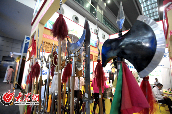 濟寧展區展示的濟寧市非物質文化遺產董氏古兵器。記者 馬俊驥 攝