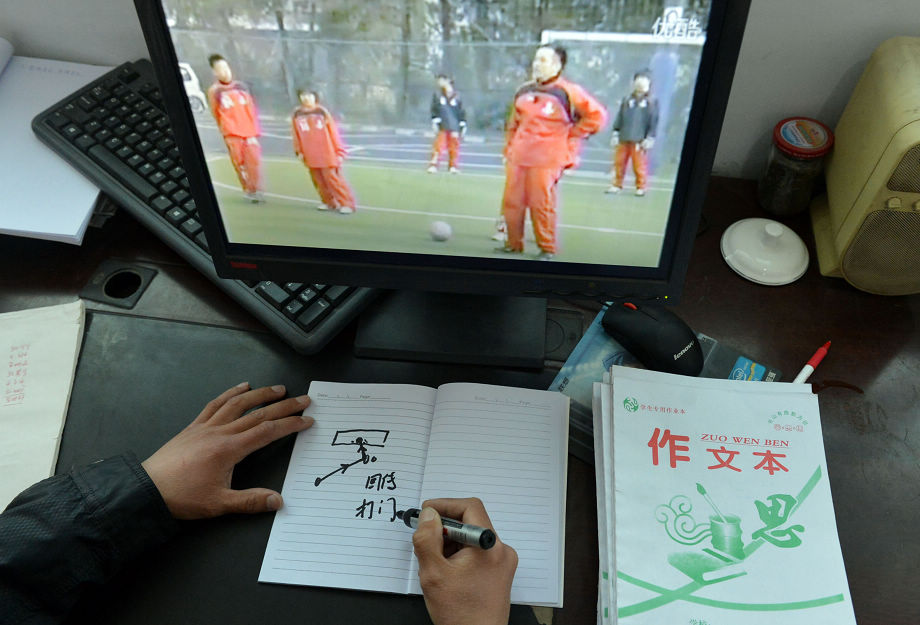 半路出家教練員王長禮通過網絡視頻現學現賣,自編足球教材。