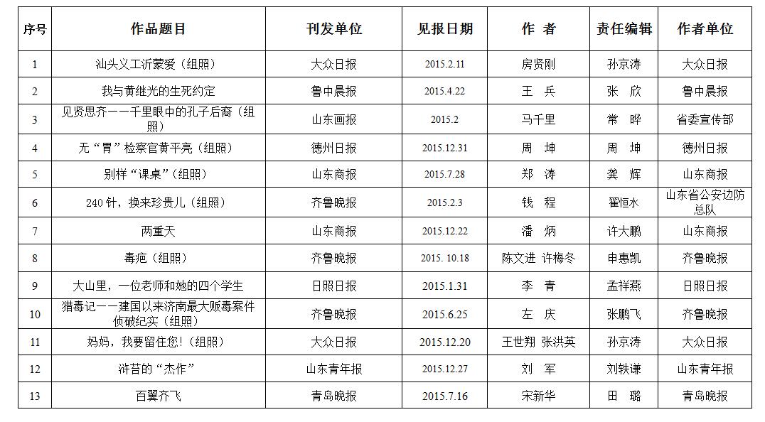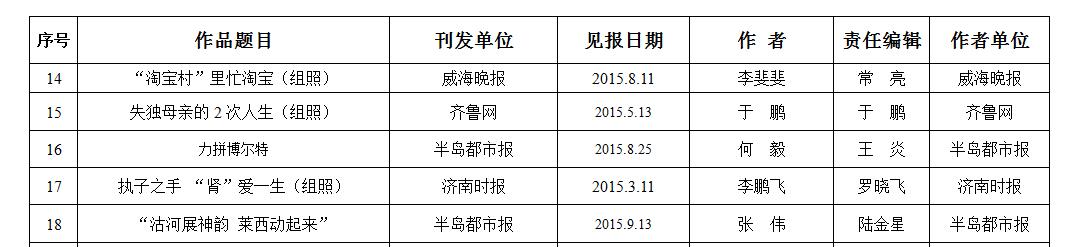 2015年度山東新聞獎攝影作品復評一等獎目錄