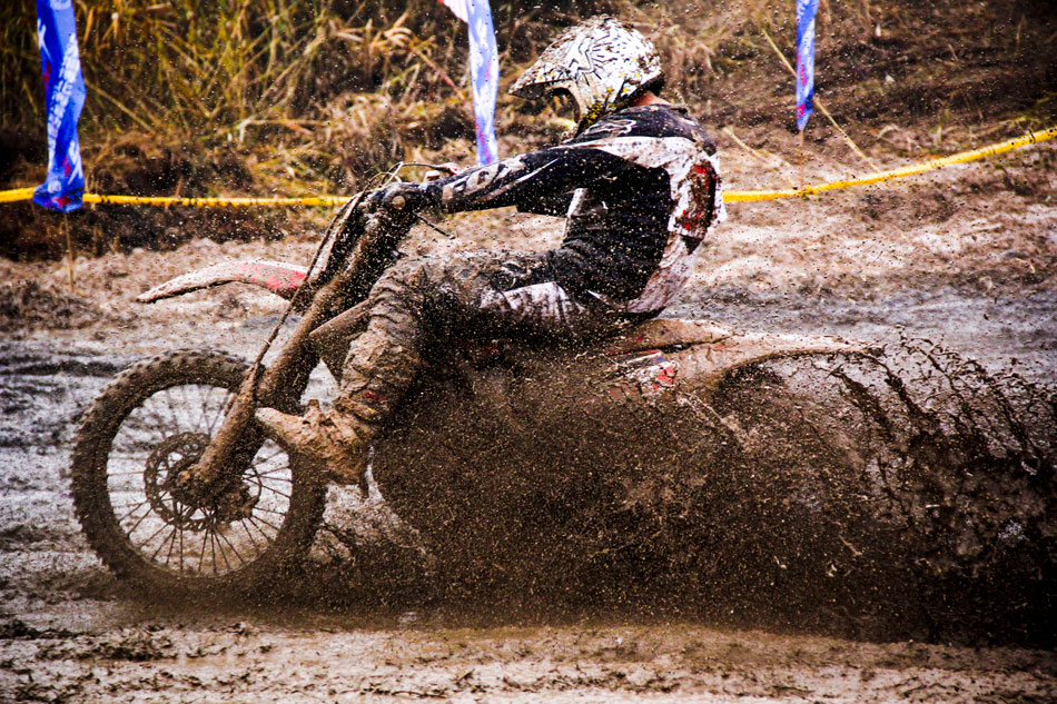 一場巔峰對決即將打響,一輛輛經過專業改裝的越野摩托車伴著隆隆的機車聲和高高卷起的泥水在賽場內飛馳、跳躍,摩托賽車的閃轉彎挪、奮力騰躍、彎道超車都讓現場冒雨觀看的觀眾大飽眼福。雨越下越密,每一個賽道上的障礙都變得更加困難,但卻絲毫沒有減滅選手的勁頭,尤其對于新秀組來講,作為越野摩托的超級愛好者,在泥地比賽的經驗較少,七圈的賽程愈發艱難,摩托車手也越來越多的出現滑倒與機車進水的狀況,但是每一位選手都在全力以赴如通鋼鐵戰士一般堅持到了最后,在這樣的惡劣天氣與環境中,更顯現出摩托車手的專業素質與體育精神。