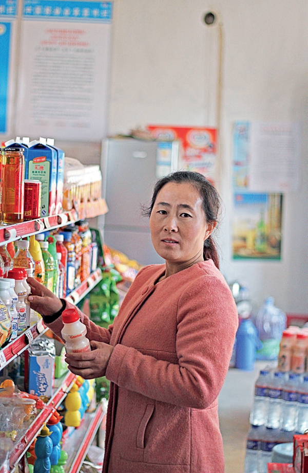 張志娟在整理自家小超市貨品