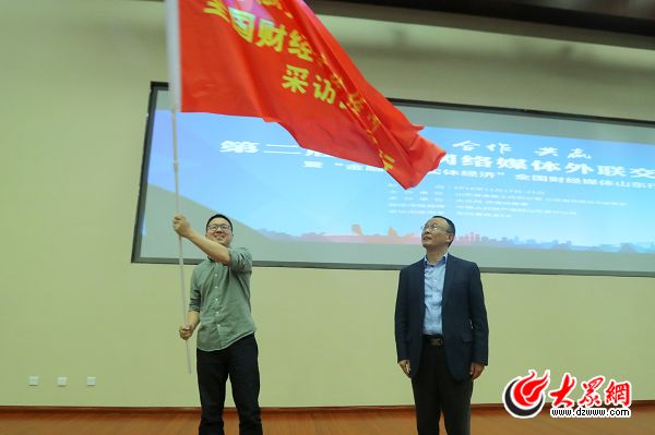 山東省金融辦副主任初明鋒向采訪團代表授旗。
