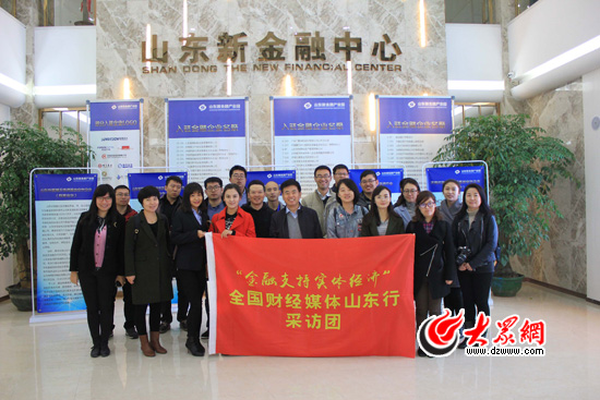 采訪團在山東新金融產業園合影。
