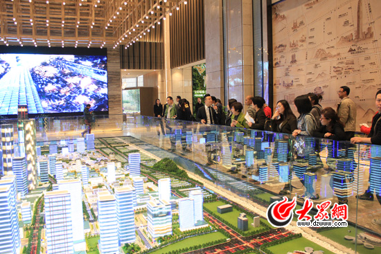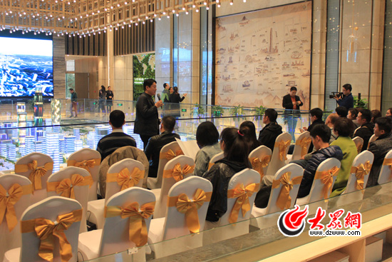 采訪團(tuán)與山東省金融辦公室政策法規(guī)處副處長賈洪斐一同來到濟(jì)南中央商務(wù)區(qū)。在已開工建設(shè)的綠地山東國際金融中心,濟(jì)南市金融辦副主任李洪偉向采訪團(tuán)記者介紹了濟(jì)南市金融工作以及CBD推進(jìn)情況。
