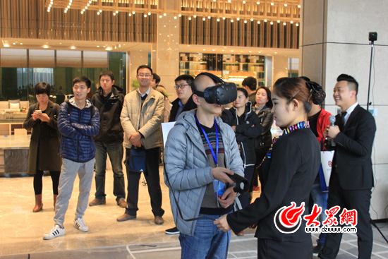 央視網(wǎng)記者體驗(yàn)VR虛擬現(xiàn)實(shí)技術(shù)。