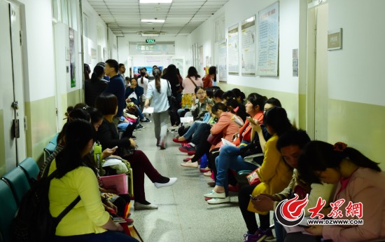 4月25日上午,山東省立醫(yī)院中心院區(qū)婦產(chǎn)科門診外,來此診療的患者們等候在走廊兩側(cè)的長椅上。大眾網(wǎng)記者 王長坤 馬俊驥 攝