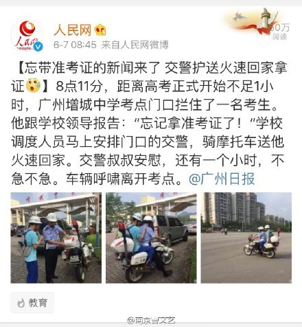 高考,一直以來就是社會的熱點問題,特別是這幾天更甚。身份證丟了的,交警送考的,忘帶準考證的,走錯考場的,缺考的,考前負傷的,考點故障的,釘子戶考生,送考家長……現在高考就是一個全民高考,沒有任何一件事情比高考更重要,所有的事情在每年的這幾天都要為高考讓路。為了高考,多少家長日日夜夜陪在孩子身邊,陪著他們熬夜,陪著他們學習,孩子辛苦,家長更辛苦。中國人把高考看的過于重要,高考是決定前途的重要因素之一,但不是唯一因素。