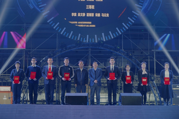 共青團山東省委黨組成員、紀檢組長謝寧,山東社會科學院黨委副書記王希軍,共同為獲得尋找青年“政治佳”(第一季)最佳組織獎的獲獎院校代表頒獎。