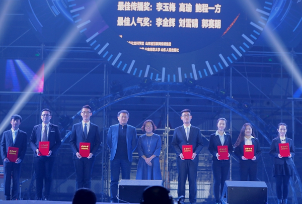山東省委宣傳部理論處處長殷玉平,山東省互聯網信息辦公室調研員喬蘭山共同為獲得尋找青年“政治佳”(第一季)一二三等獎的獲獎代表頒獎。