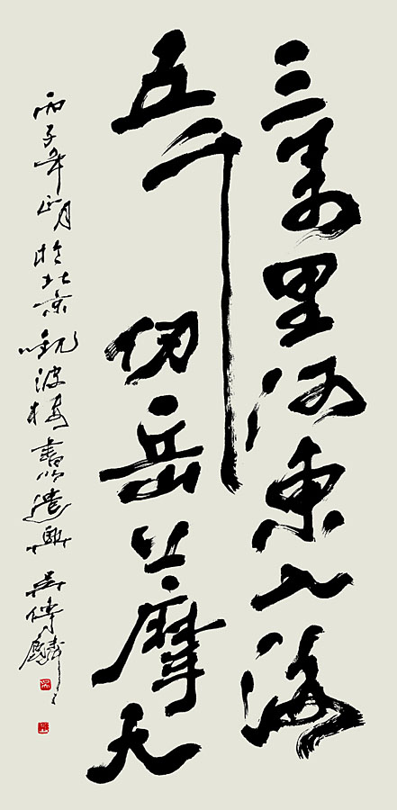 吳傳麟幼年時即受教于關友聲、劉魯生、黑伯龍、岳祥書、王天池、金棻諸大家,青年時期成為李苦禪先生的入室弟子,并得到葉淺予、郭味蕖、王雪濤、宗其香、吳作人、肖淑芳、惠孝同、秦仲文、吳鏡汀、雷圭元、張仃、常莎娜、田世光、俞致貞等先生傳藝,中外美術史及文學寫作得到尚愛松、吳達志、奚靜之、王家樹諸先生的悉心教誨。他的藝術創作以國畫為主,山水、花鳥、人物、書法均有大成。其作品平實中透出高雅,深厚的傳統繪畫功力中洋溢著強烈的時代氣息,現實主義與浪漫主義相結合、與時俱進、雅俗共賞是其作品的特色。他的國畫作品以書法筆致入畫、以勢取勝,用筆有序,繁而不亂,濃墨、淡墨、潑墨、積墨、焦墨與不同筆法、筆形、筆感各得其所,在多次皴擦渲染中,造就了境界蒼茫、渾然的效果,具有鮮明的個人特色,開創了一代畫風。他的書法作品氣魄恢弘而俊朗、舒峭卻又不失拙意;綿里藏針、細中寓柔、柔中見剛;潤而滿,不滯、不滑、骨力洞達卻將霸悍之氣藏于水墨之間不露痕跡,不愧是一代名家風范。