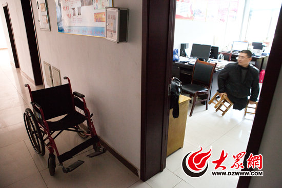 靠著一把輪椅和一對小板凳,吳洪飛穿梭在各個辦公樓之前,堅持獨立完成日常工作。