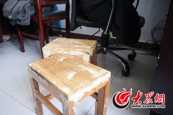 長年累月,吳洪飛用來充當雙腿的一對小板凳已經嚴重磨損。