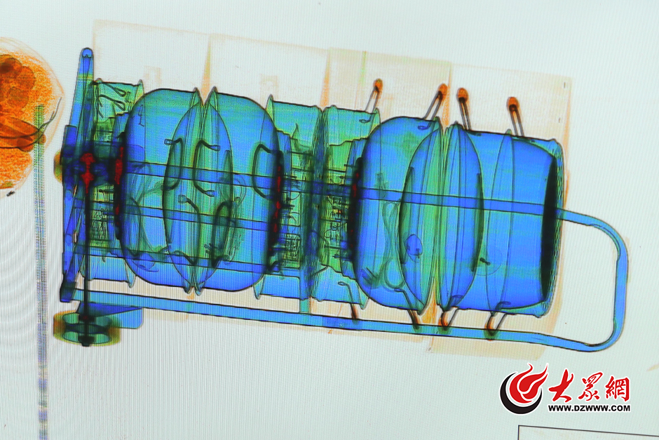 1月19日,2017年春節越來越近,春運客流逼近高峰,旅客們帶著大包小包的行李踏上回家的旅程。他們的行囊中都裝的啥?1月19日,大眾網記者在濟南火車站,透過車站安檢儀拍攝下了“春運中的行囊”,在安檢儀X光的掃描下,里面物品的輪廓一清二楚。各式的行囊在屏幕上形成了一幅幅濃縮著期盼和向往的歸家圖。圖為安檢儀中的高壓鍋。大眾網記者 王長坤 攝