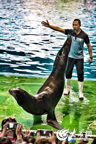 郭曉東是一名“80后”,和其他年輕人一樣,他有理想,有沖勁,想找到自己的人生價值。郭曉東加入到極地海洋世界7年的時間里,海獅、海豹、白鯨、海豚都馴養(yǎng)過!皠游飩兌际怯徐`性的,喂食、陪玩耍,慢慢的就和他們培養(yǎng)出了感情。”郭曉東告訴大眾網(wǎng)記者說,第一次登臺表演時,當(dāng)時觀眾差不多有近千人,他緊張到?jīng)]有勇氣看臺下的觀眾,一直看著他的‘搭檔’,“估計小家伙感覺到我有點(diǎn)不對頭,乖乖地盯著我,我仿佛感受到了它對我的鼓勵,接下來的表演非常順利。表演結(jié)束后臺下掌聲如潮,我想這份喜悅和肯定少不了我‘搭檔’的功勞”。