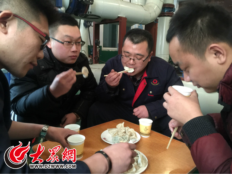 忙碌了一天,包海濤和同事們終于吃上了熱乎的水餃。